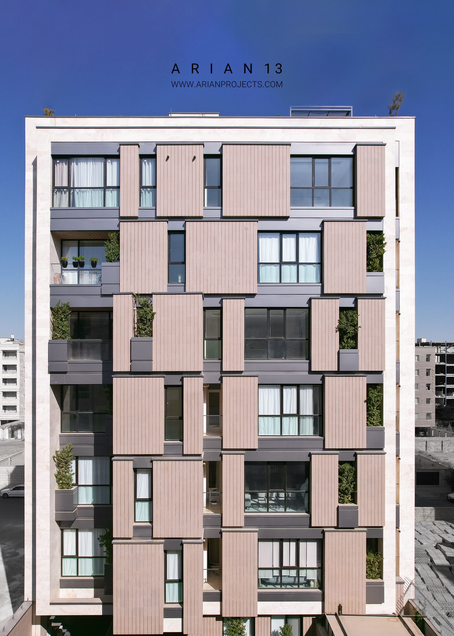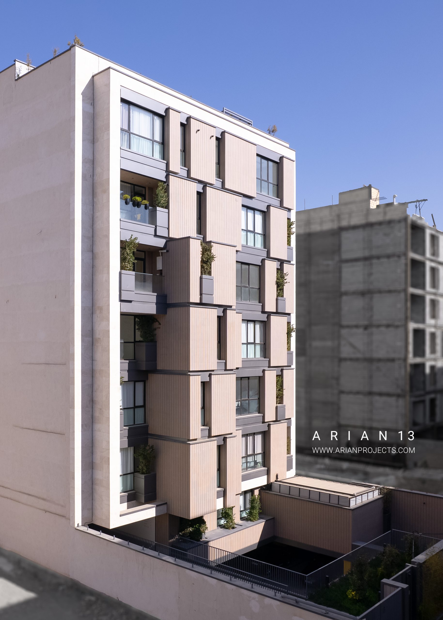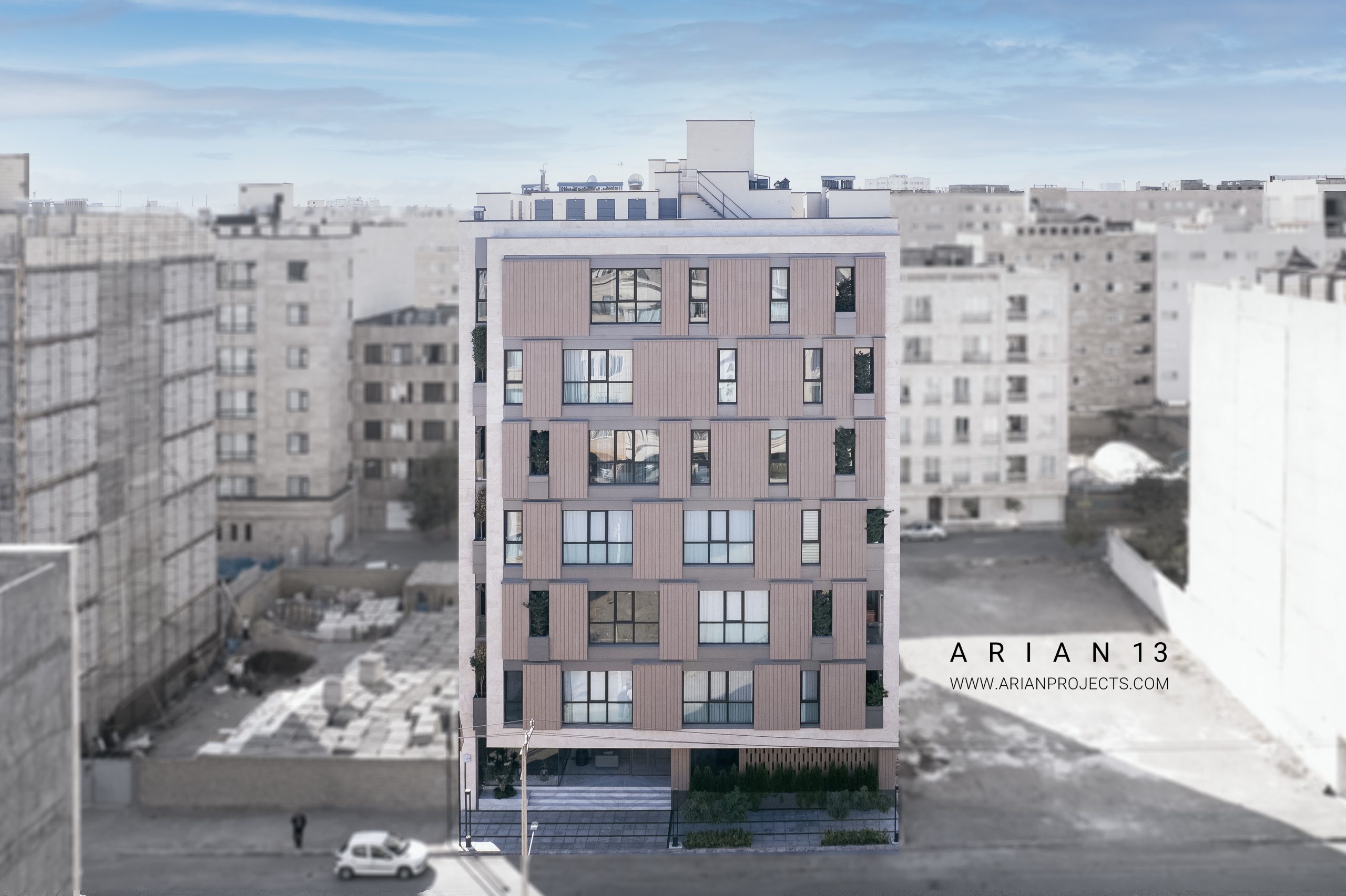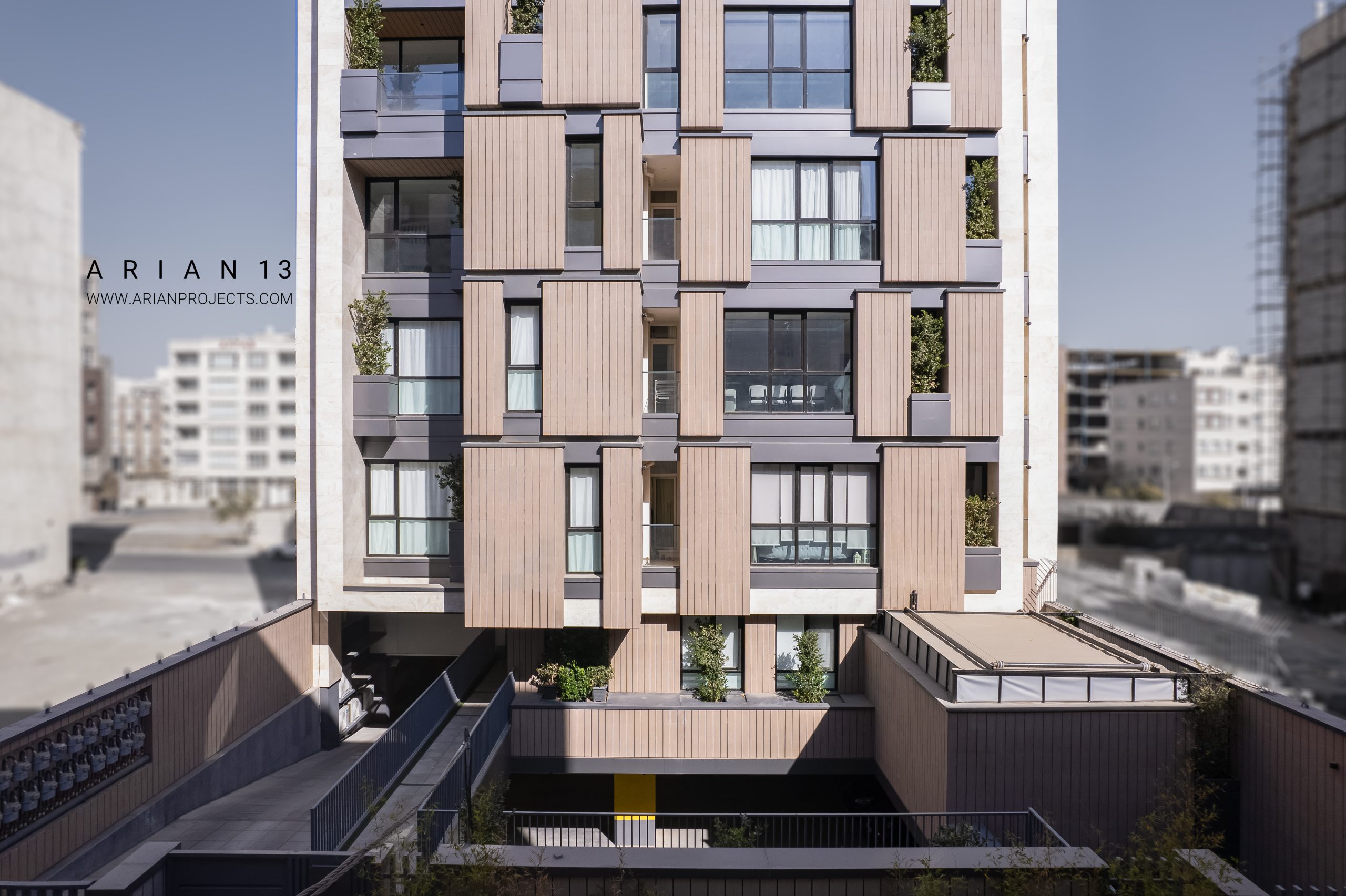 پروژه آرین 13 مجموعا دارای22 واحد مجزا می باشد . زیرزمین این پروژه شامل فضای پارکینگ بوده،طبقه همکف این پروژه شامل واحد سرایداری، یک واحد مسکونی و و سالن ورزشی و سونا بوده و واحد های مسکونی در طبقات همکف تا ششم قرار گرفته اند. هر طبقه از پروژه دارای سه الی چهار واحد مسکونی تیپ های A-B-C-D می باشد که واحد های طبقه آخر دارای حیاط مرکزی بوده و در حال حاضر واحد های این پروژه به فروش رسیده اند.