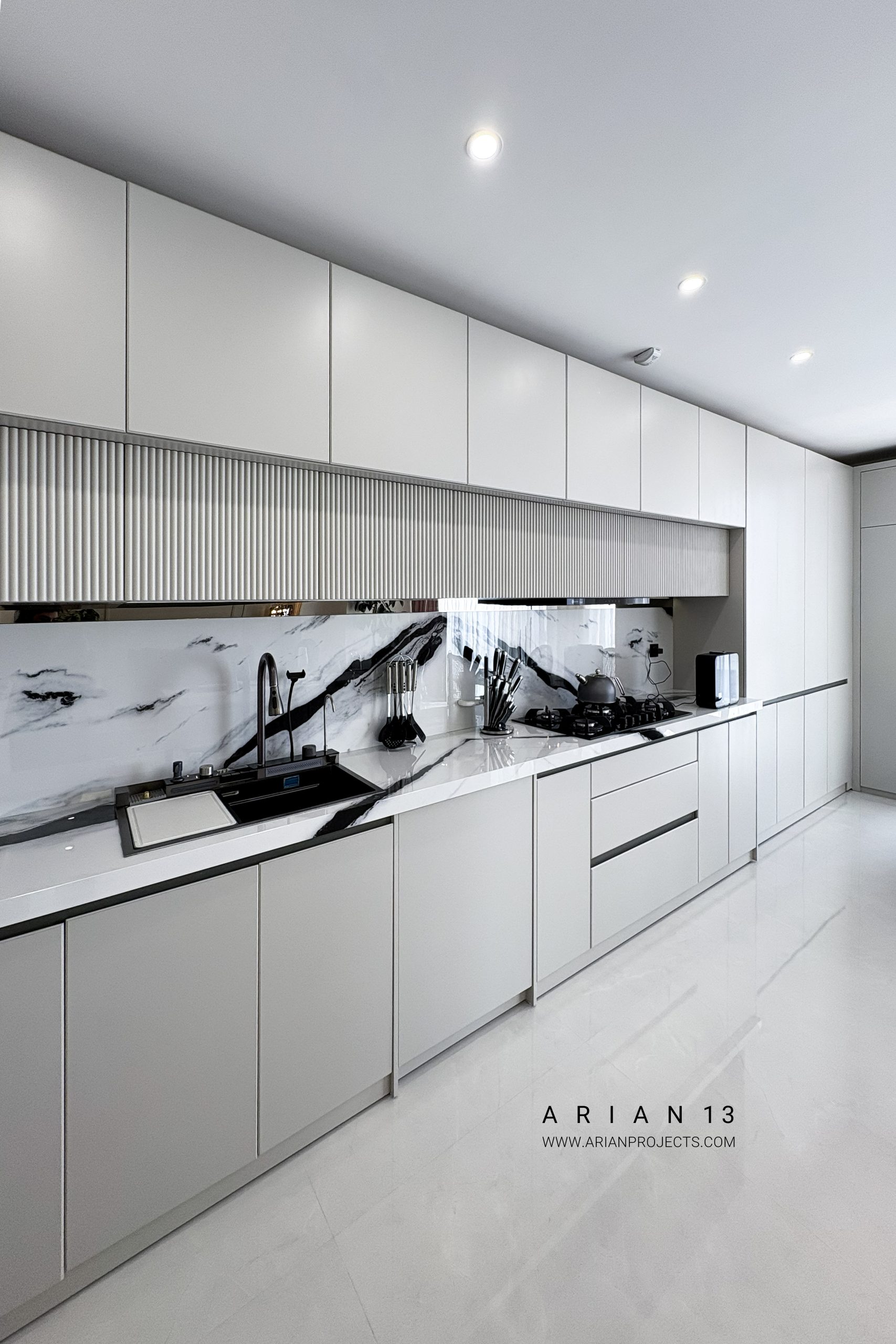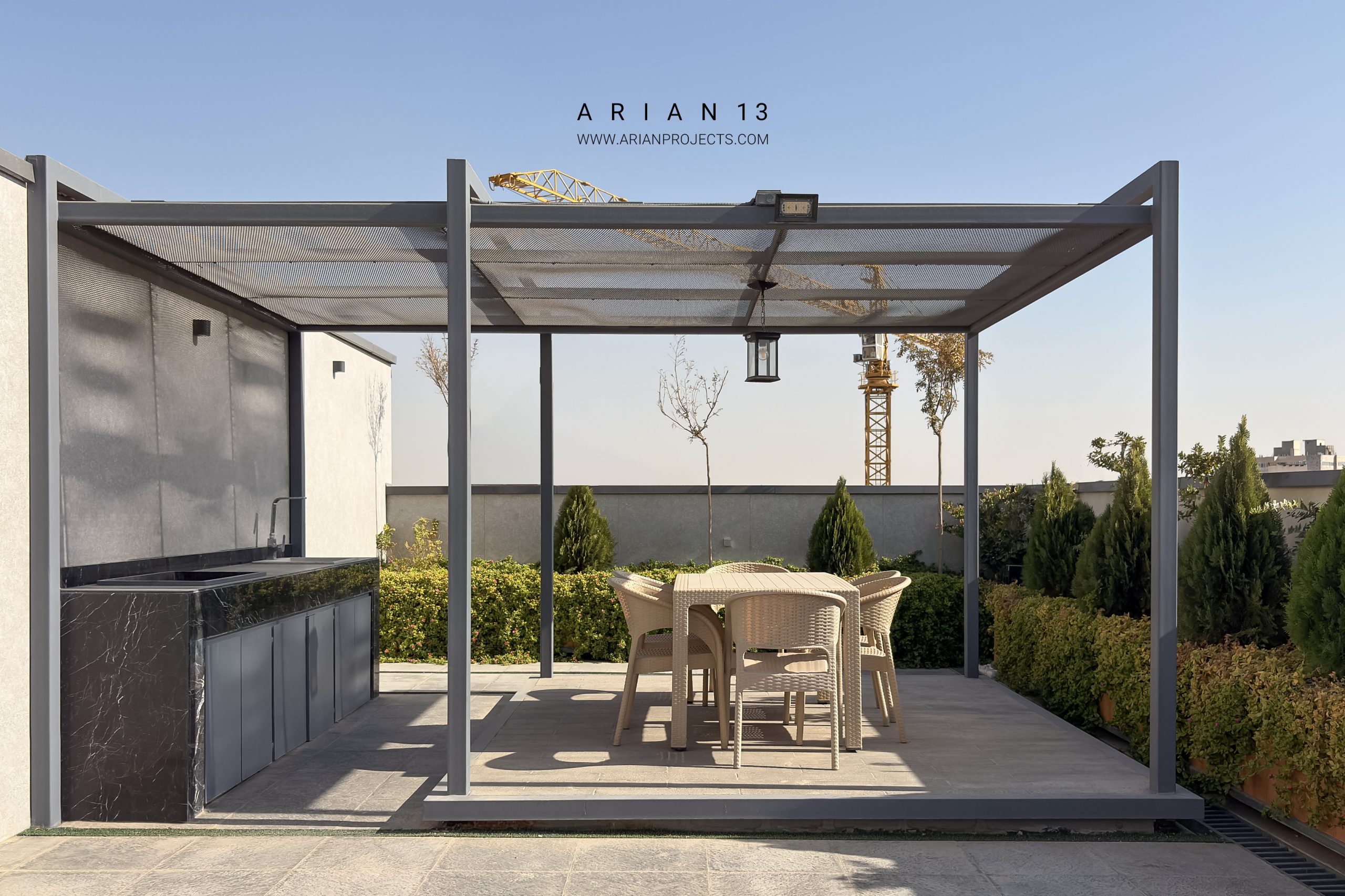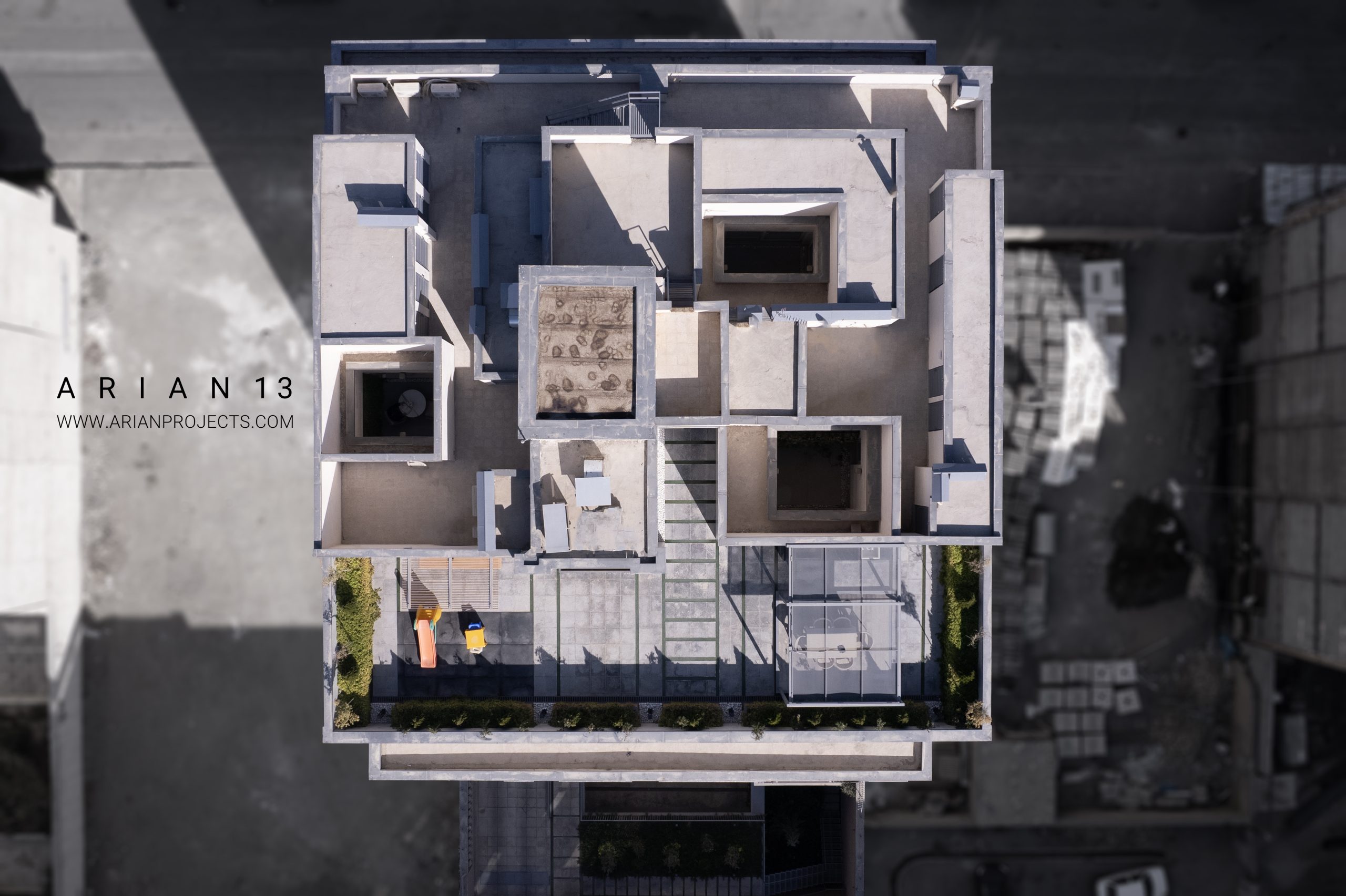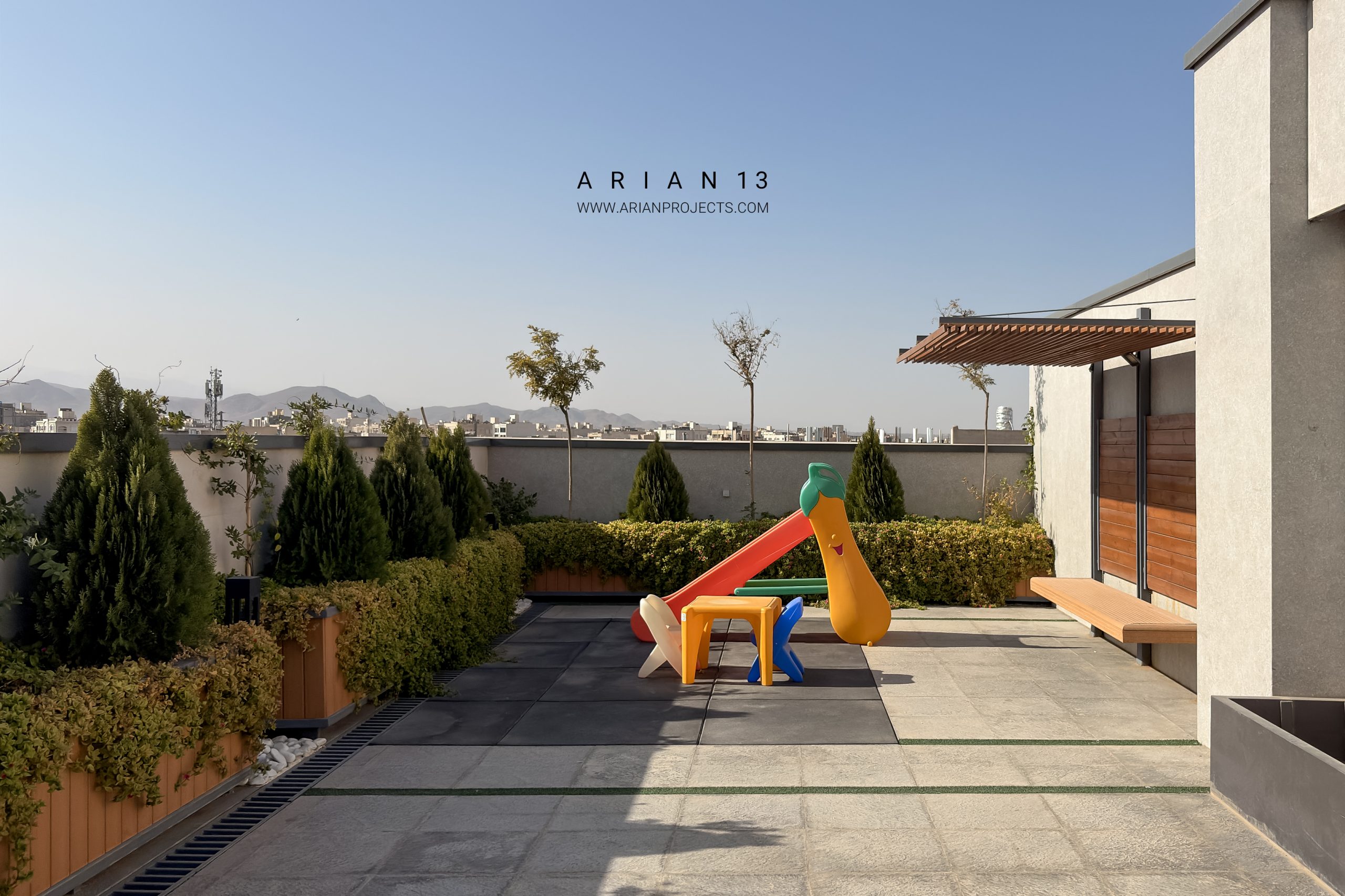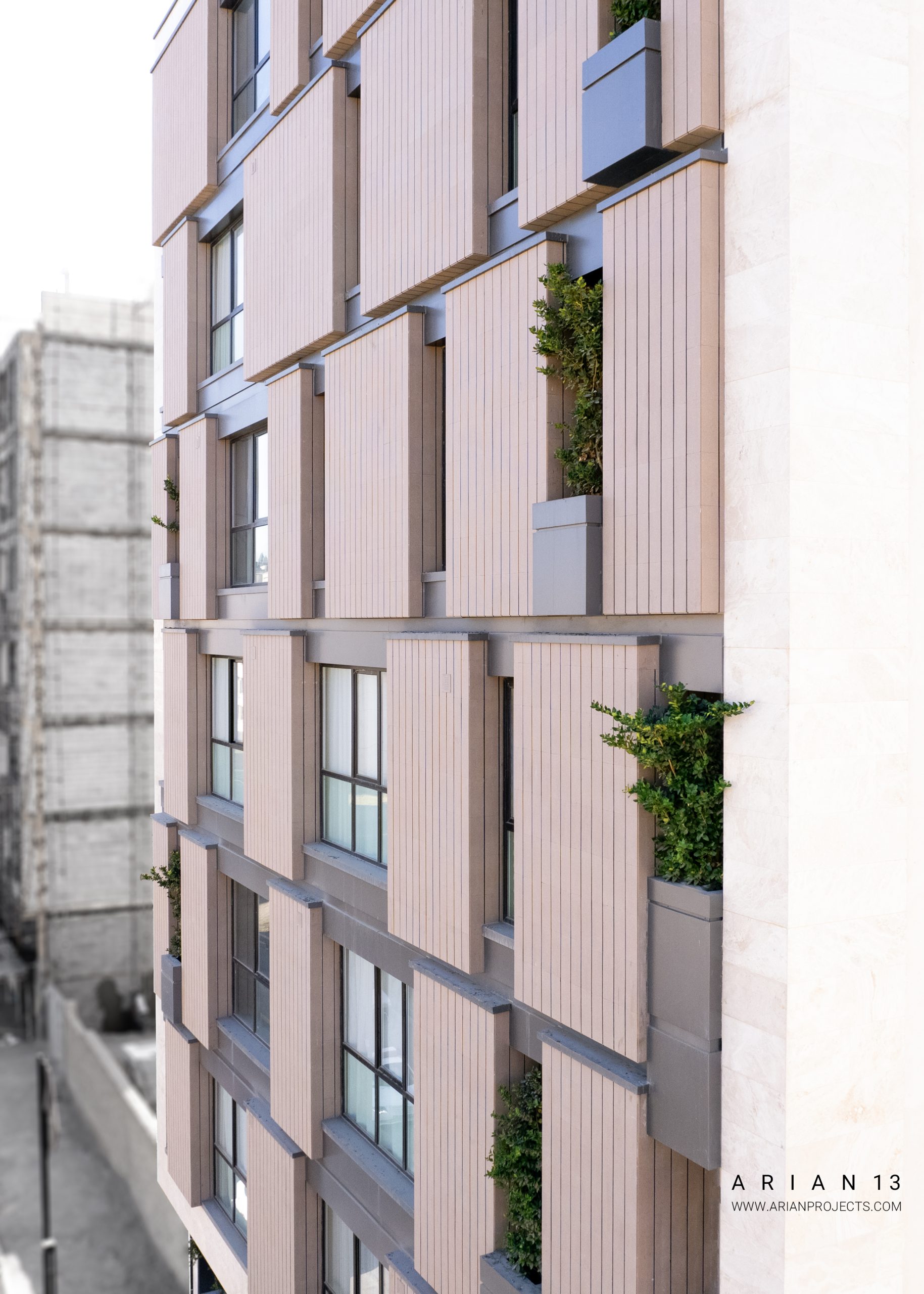 پروژه آرین 13 مجموعا دارای22 واحد مجزا می باشد . زیرزمین این پروژه شامل فضای پارکینگ بوده،طبقه همکف این پروژه شامل واحد سرایداری، یک واحد مسکونی و و سالن ورزشی و سونا بوده و واحد های مسکونی در طبقات همکف تا ششم قرار گرفته اند. هر طبقه از پروژه دارای سه الی چهار واحد مسکونی تیپ های A-B-C-D می باشد که واحد های طبقه آخر دارای حیاط مرکزی بوده و در حال حاضر واحد های این پروژه به فروش رسیده اند.
