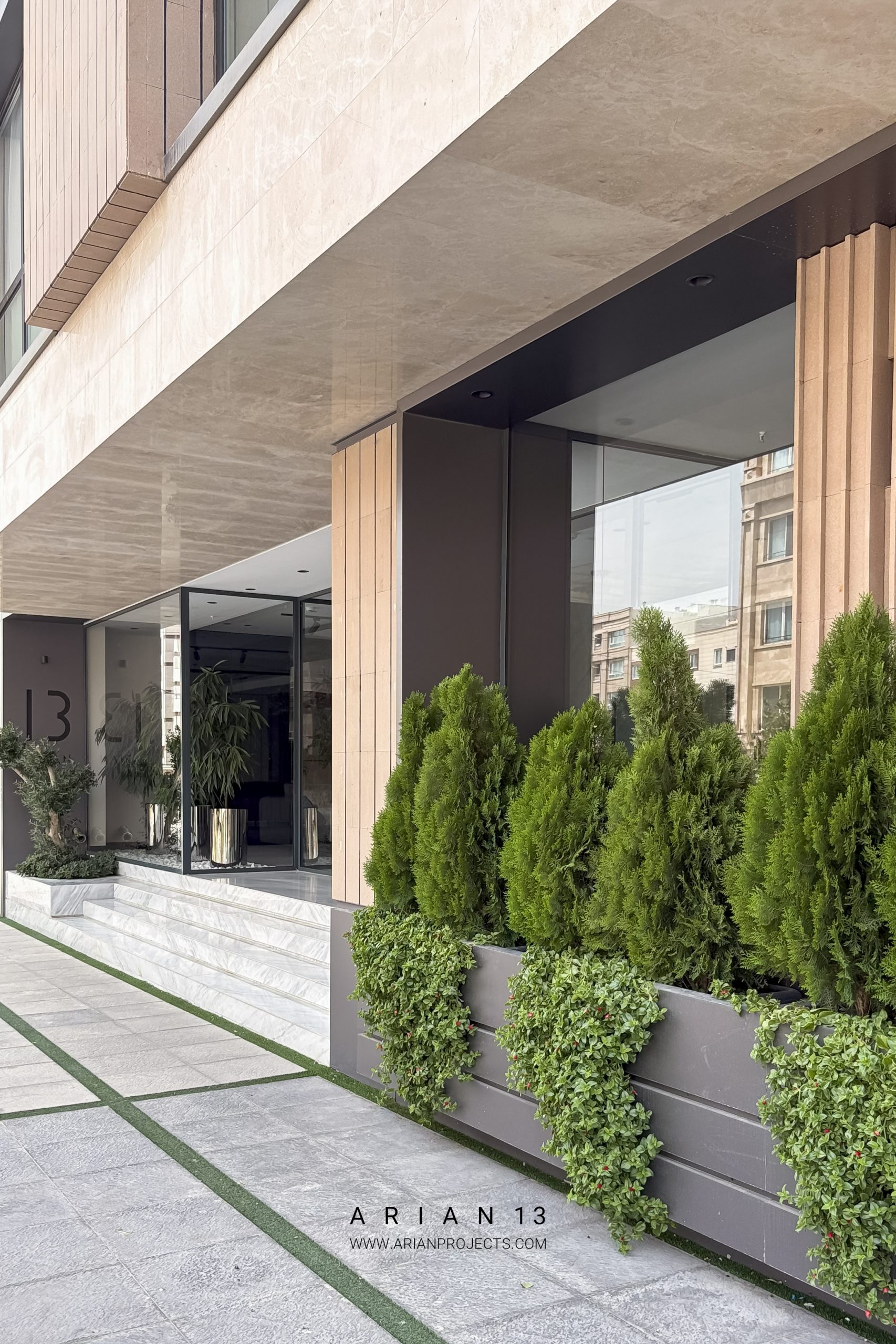 پروژه آرین 13 مجموعا دارای22 واحد مجزا می باشد . زیرزمین این پروژه شامل فضای پارکینگ بوده،طبقه همکف این پروژه شامل واحد سرایداری، یک واحد مسکونی و و سالن ورزشی و سونا بوده و واحد های مسکونی در طبقات همکف تا ششم قرار گرفته اند. هر طبقه از پروژه دارای سه الی چهار واحد مسکونی تیپ های A-B-C-D می باشد که واحد های طبقه آخر دارای حیاط مرکزی بوده و در حال حاضر واحد های این پروژه در حال فروش هستند.